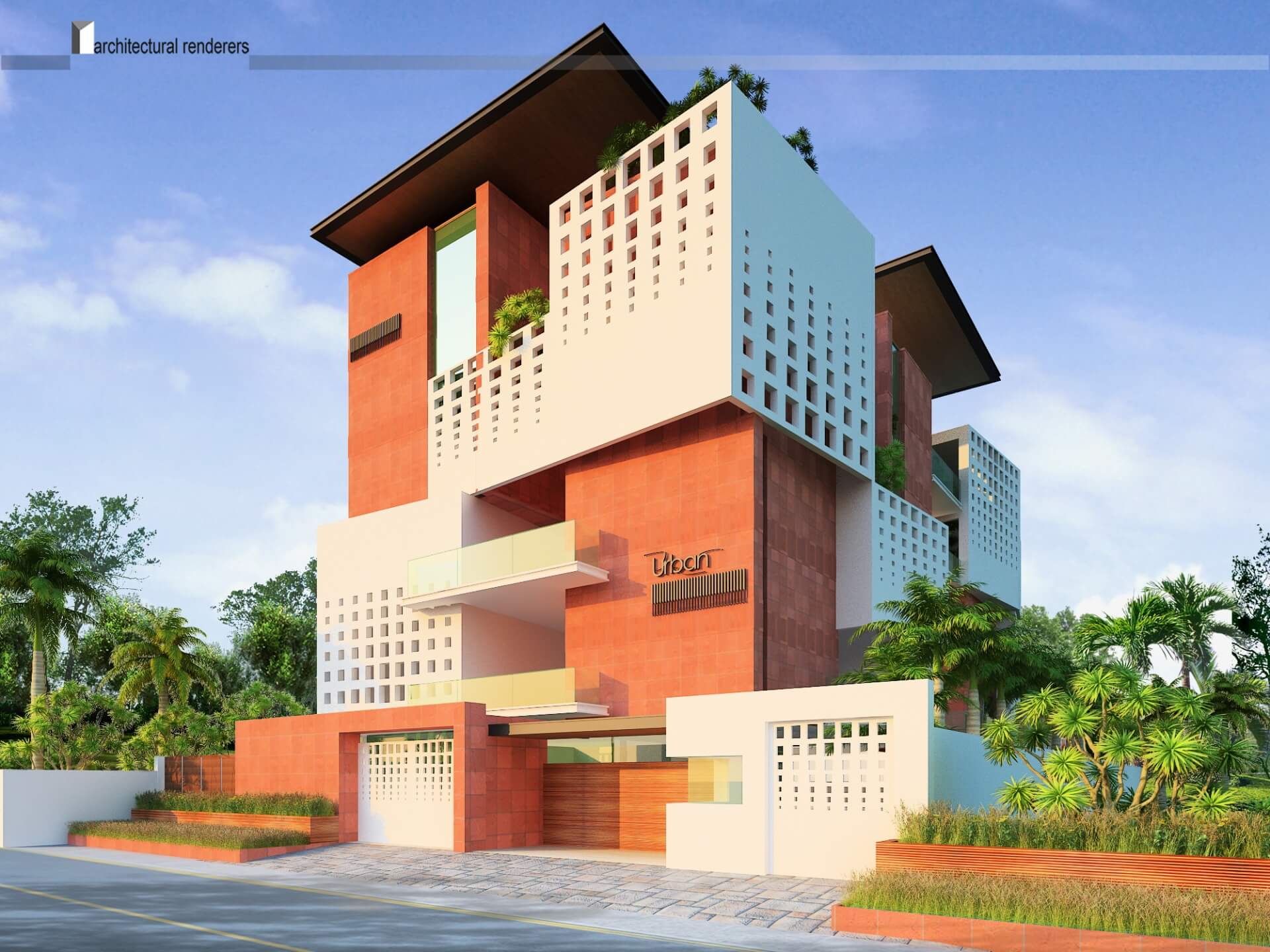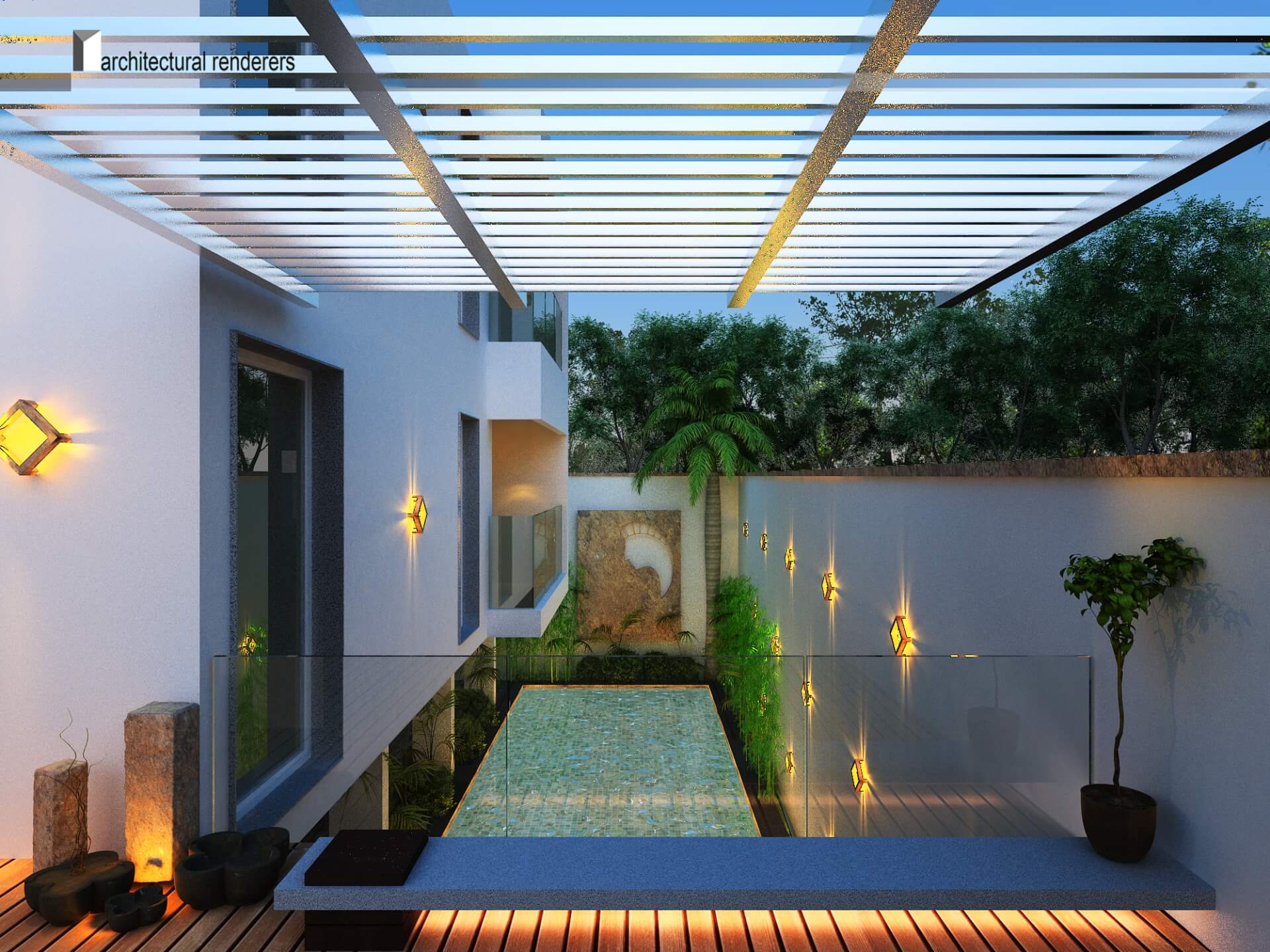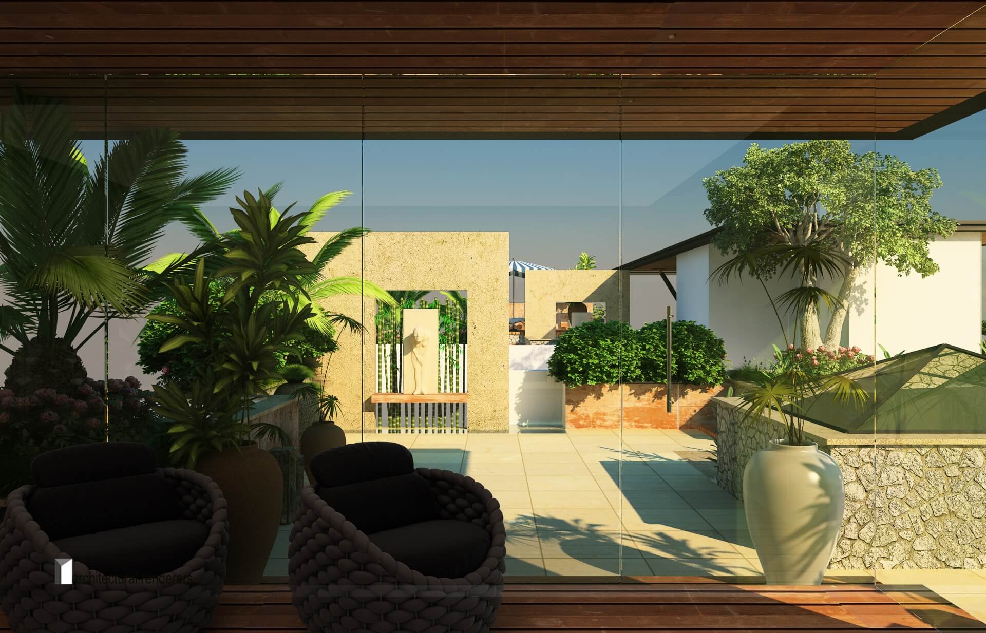 The idea behind creating these punctured bricks, is to bring fresh air and natural light filled atmosphere, while providing privacy from the outdoor. Planning of courtyard concept to this residence creates special sense of Serenity and allows nature to become major part of home's makes-up.