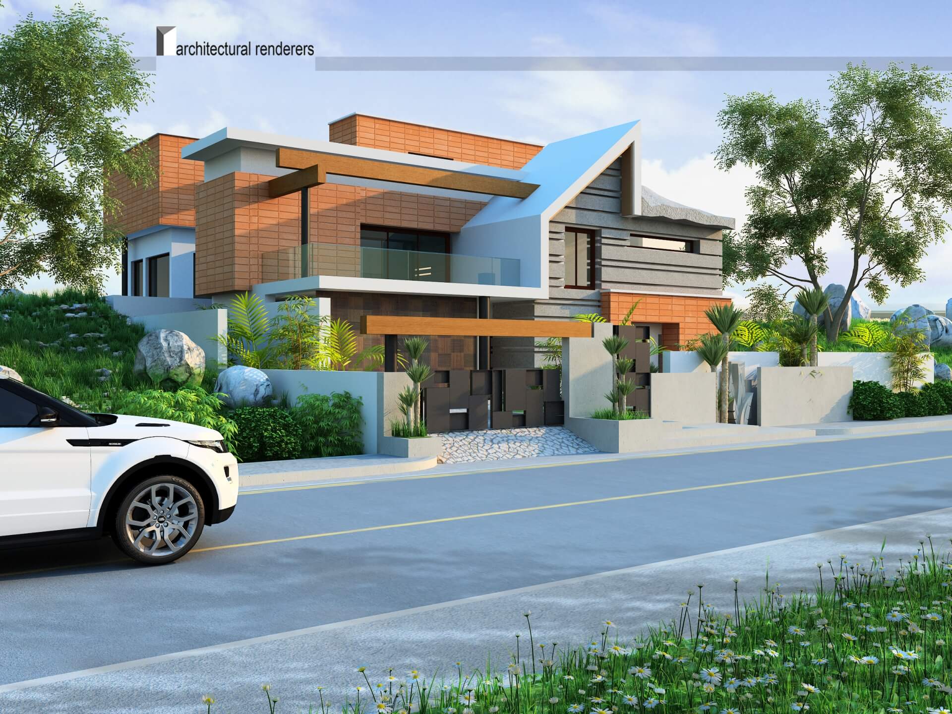 This modern house exterior boasts clean lines and undeniable sleekness. because there is such little ornamentation in modern architecture, the actual shape of the building is what makes it feel unique, cutting edge and beautiful. The large floor to ceiling windows and open floor plan allow natural light to pour into the house and showcase the interior to the outside world. Contrast is created with wooden panels and streamlined look of the polished white paint.