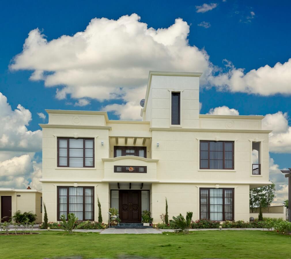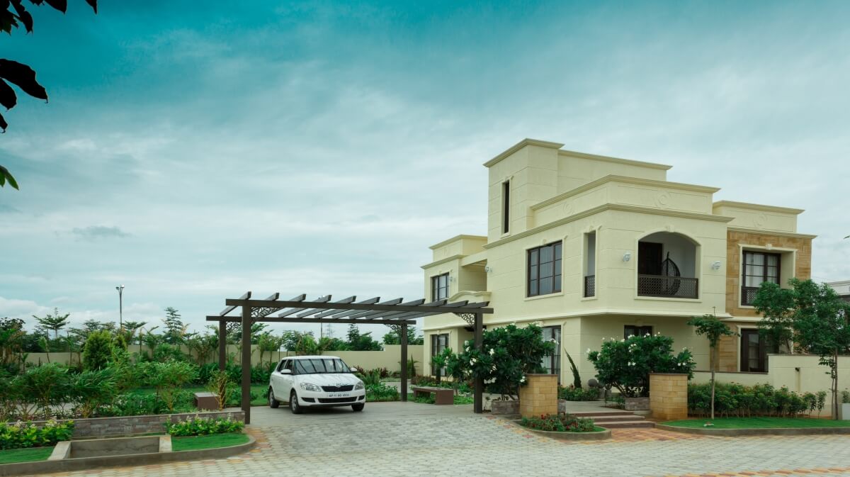 Lahari Anandha is located in bhanur. designed with clean arches and simple lines, it stands out for its structure, elements and proportion.