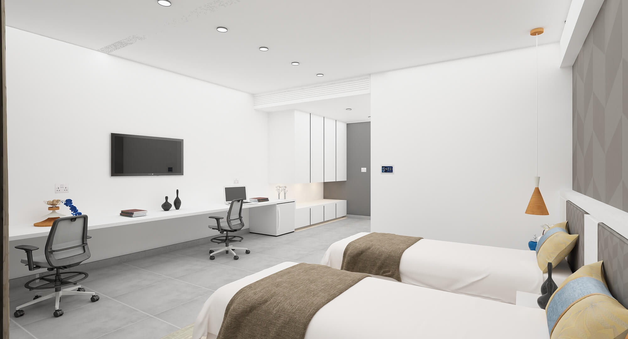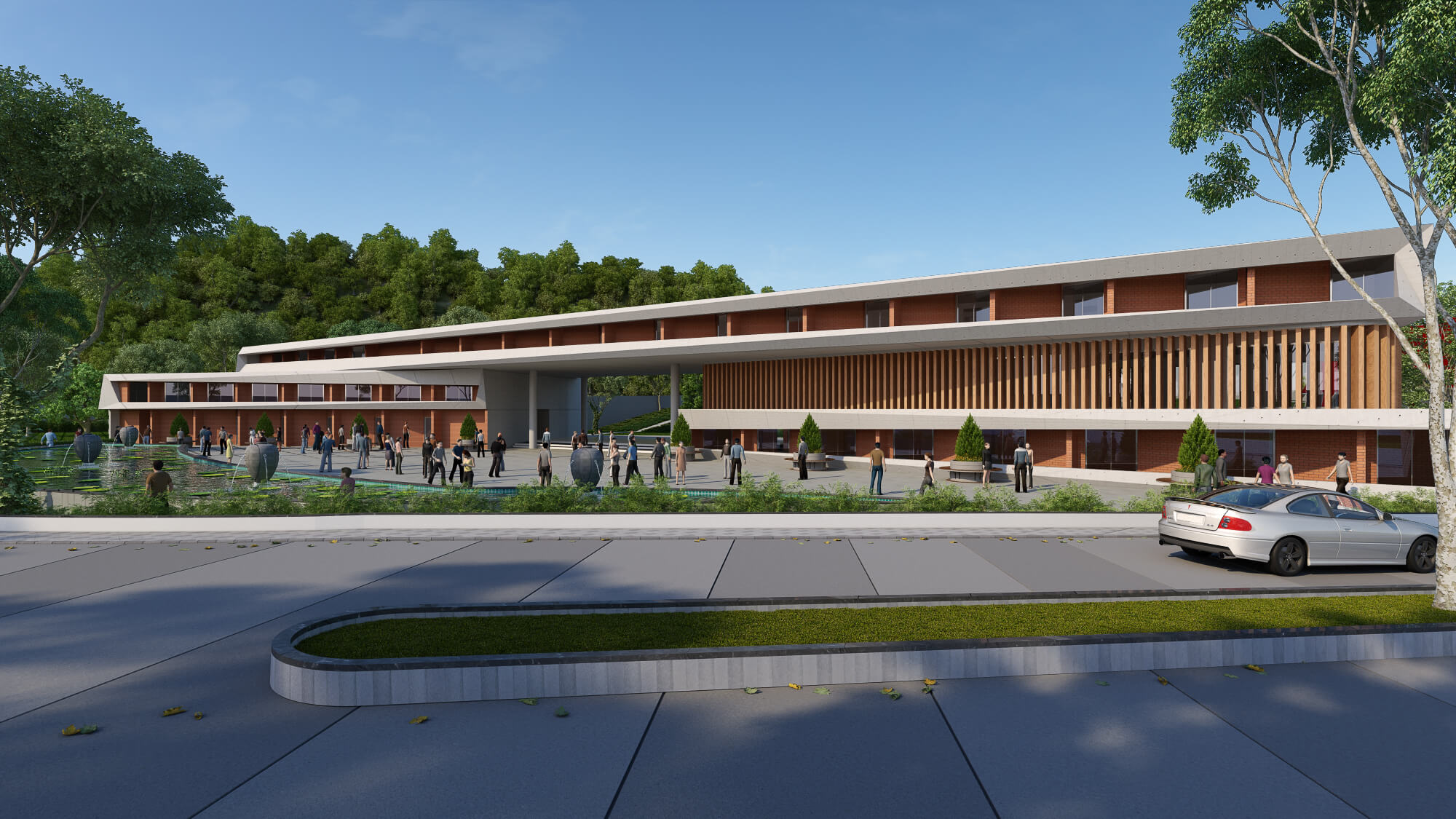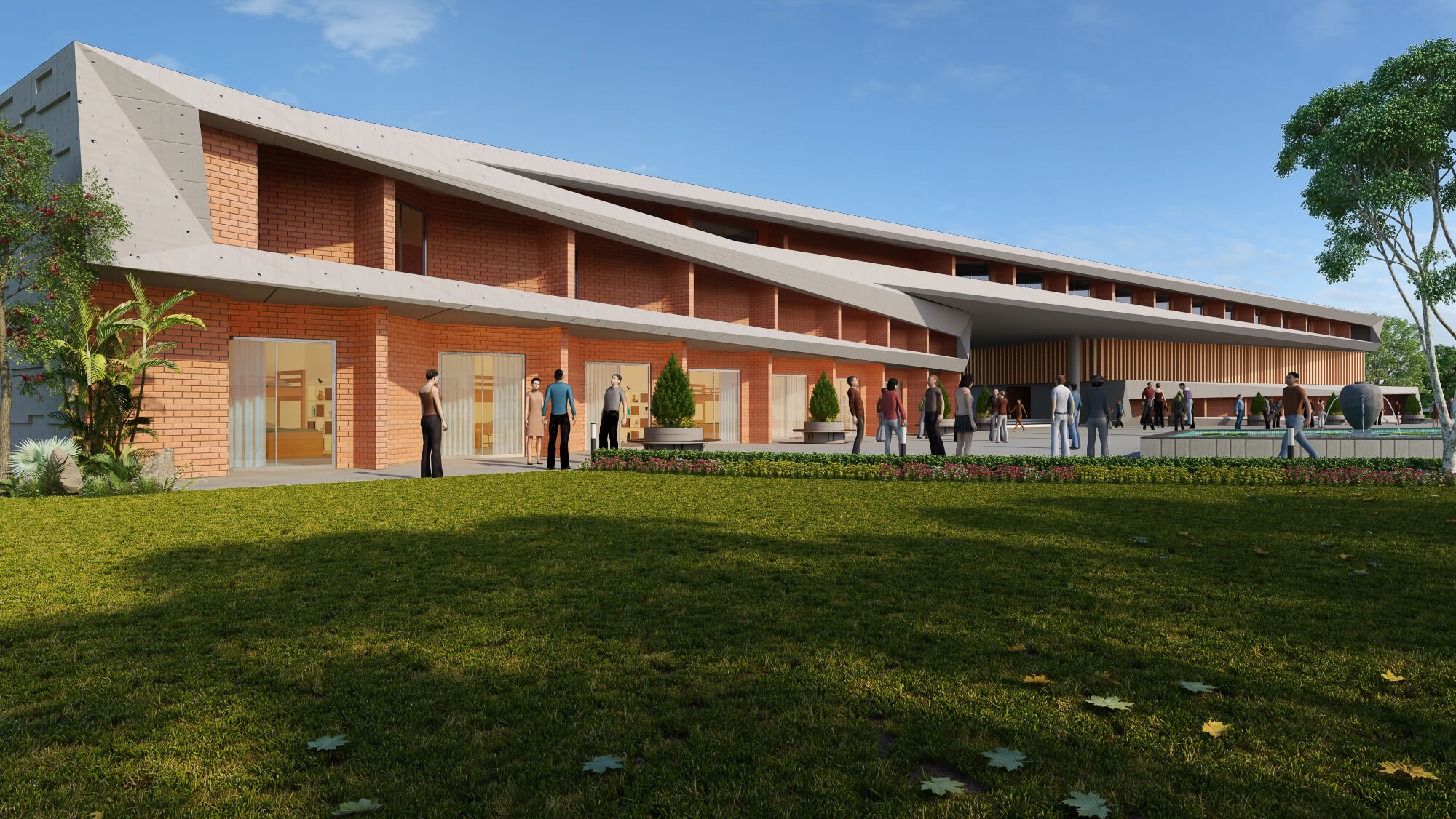 The land and its environment together with uneven topography of the site are taken as the structural principals in developing. the interior spaces feels much more expanded due to harmonious linear design and the creative use of open space.