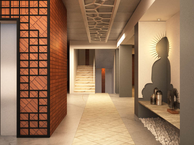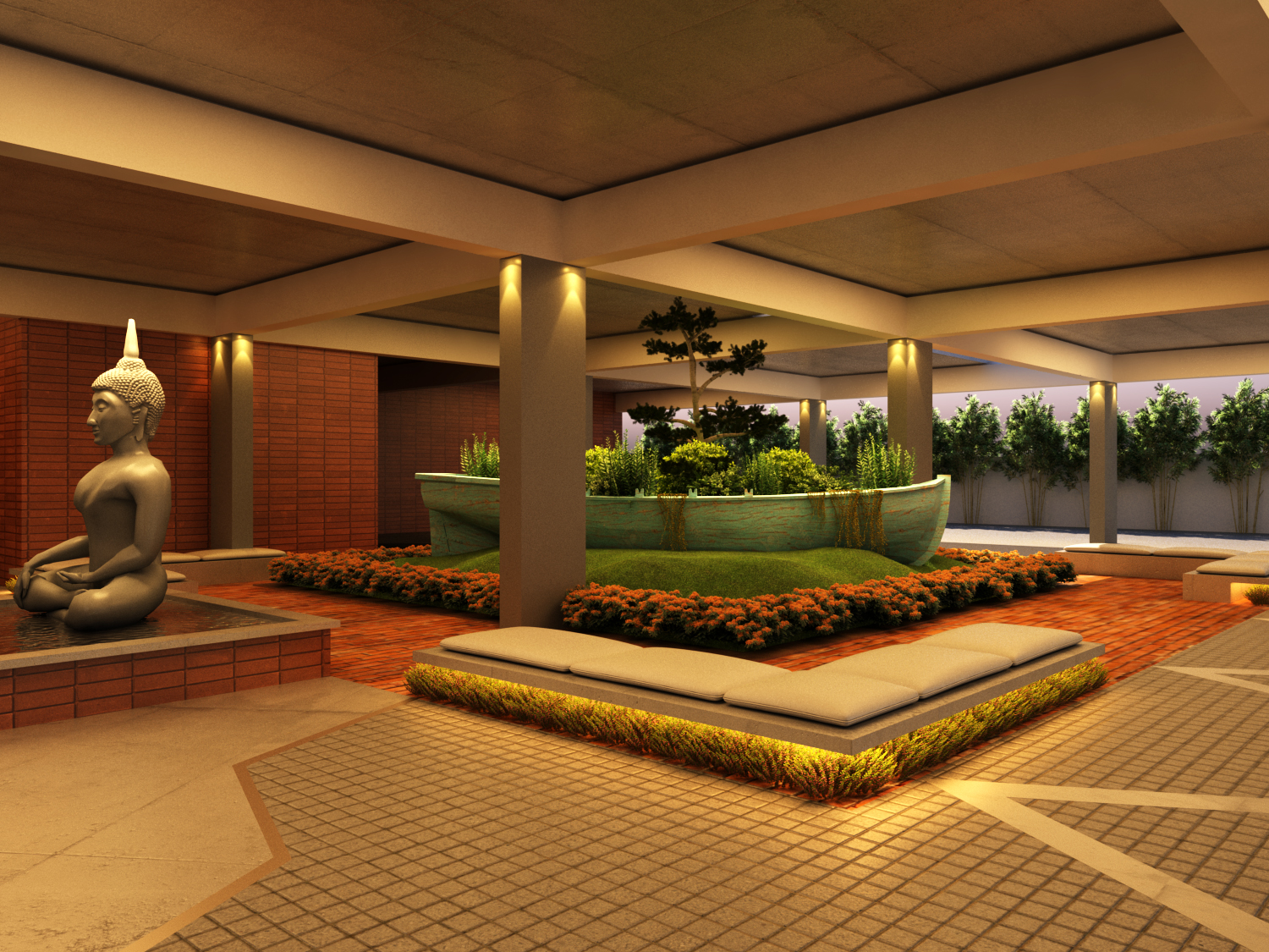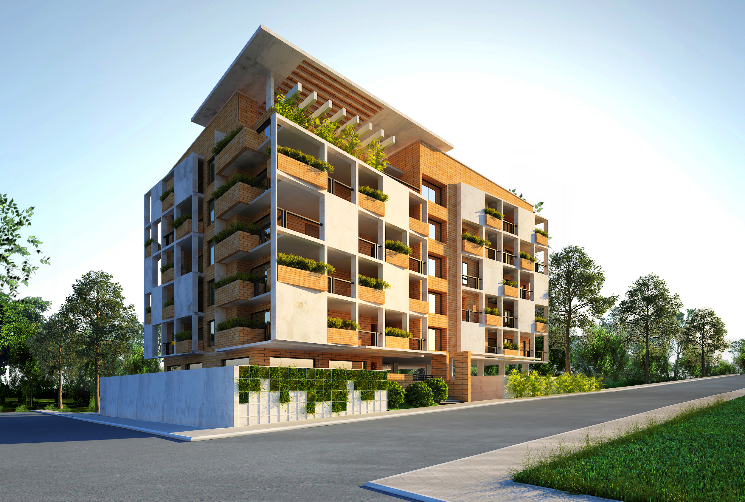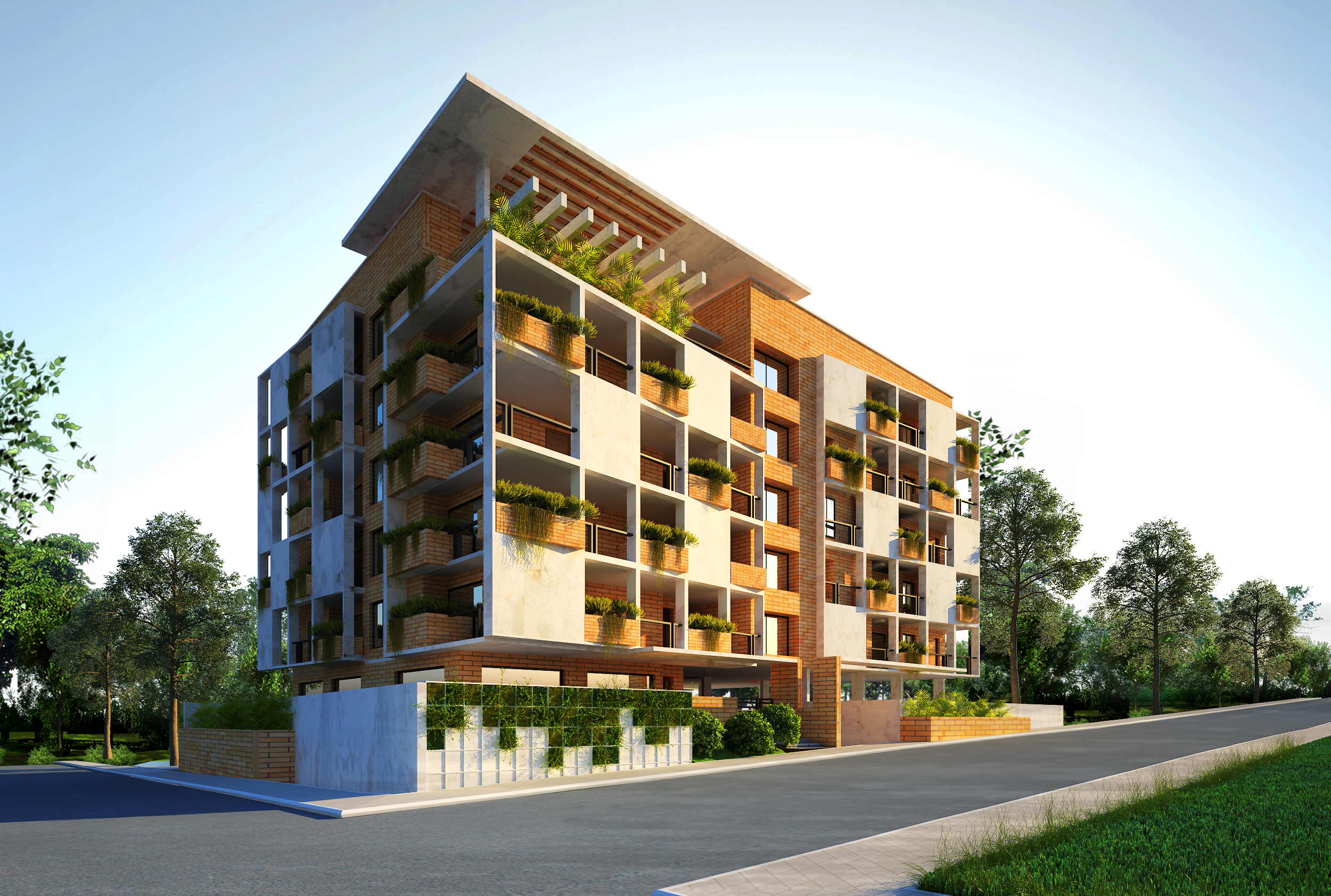 Four sides elevation of this apartment is stuffed with exposure bricks design including concrete stucco, added planter boxes on each floor around the apartment outface sides and top of the building covered with facade design. When it comes to the stilt floor it represents as a peaceful place with the comfortable sitting slots landscape & tidy lighting theme. And i can say lift lobby is a piece of unique design with peace represent things.