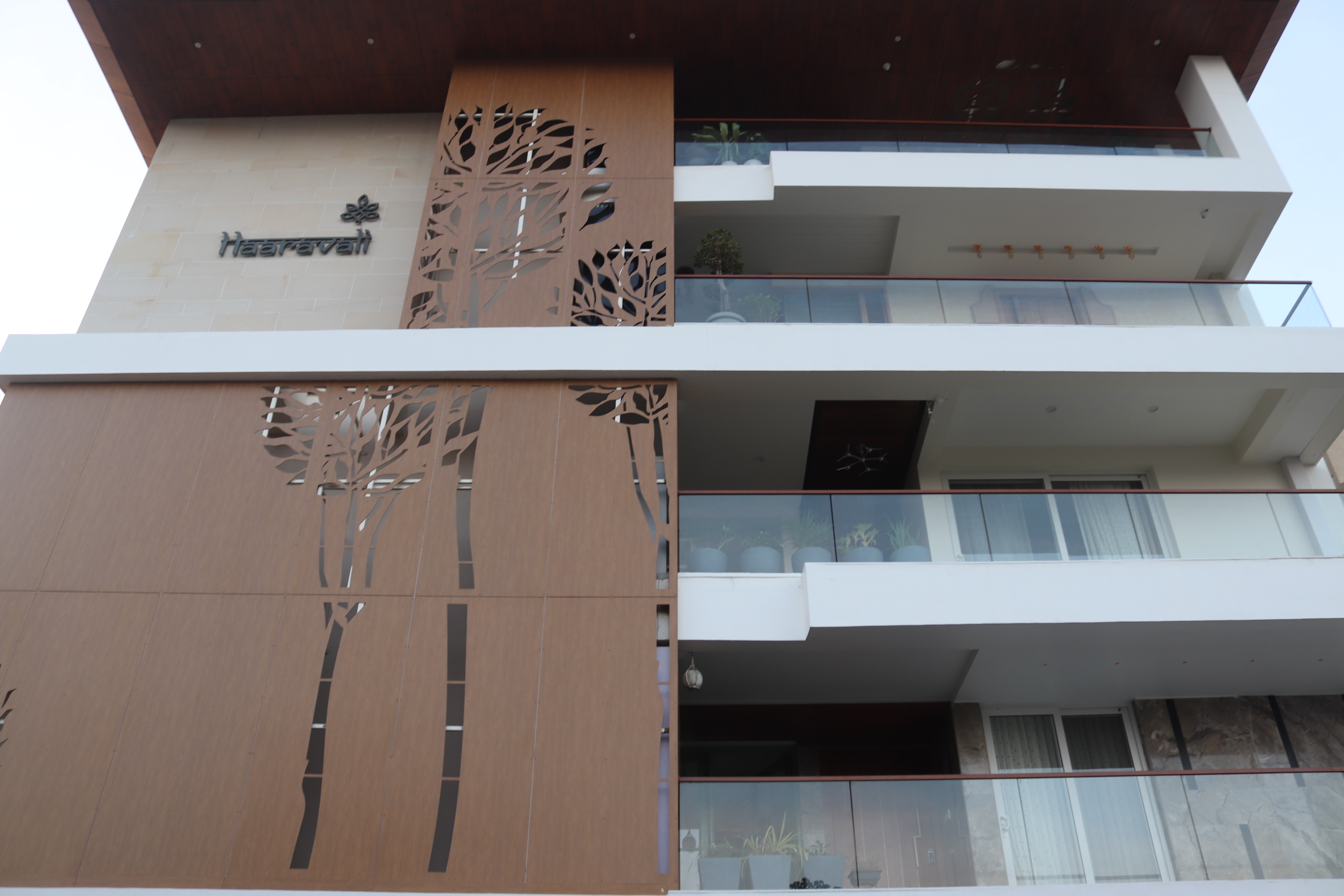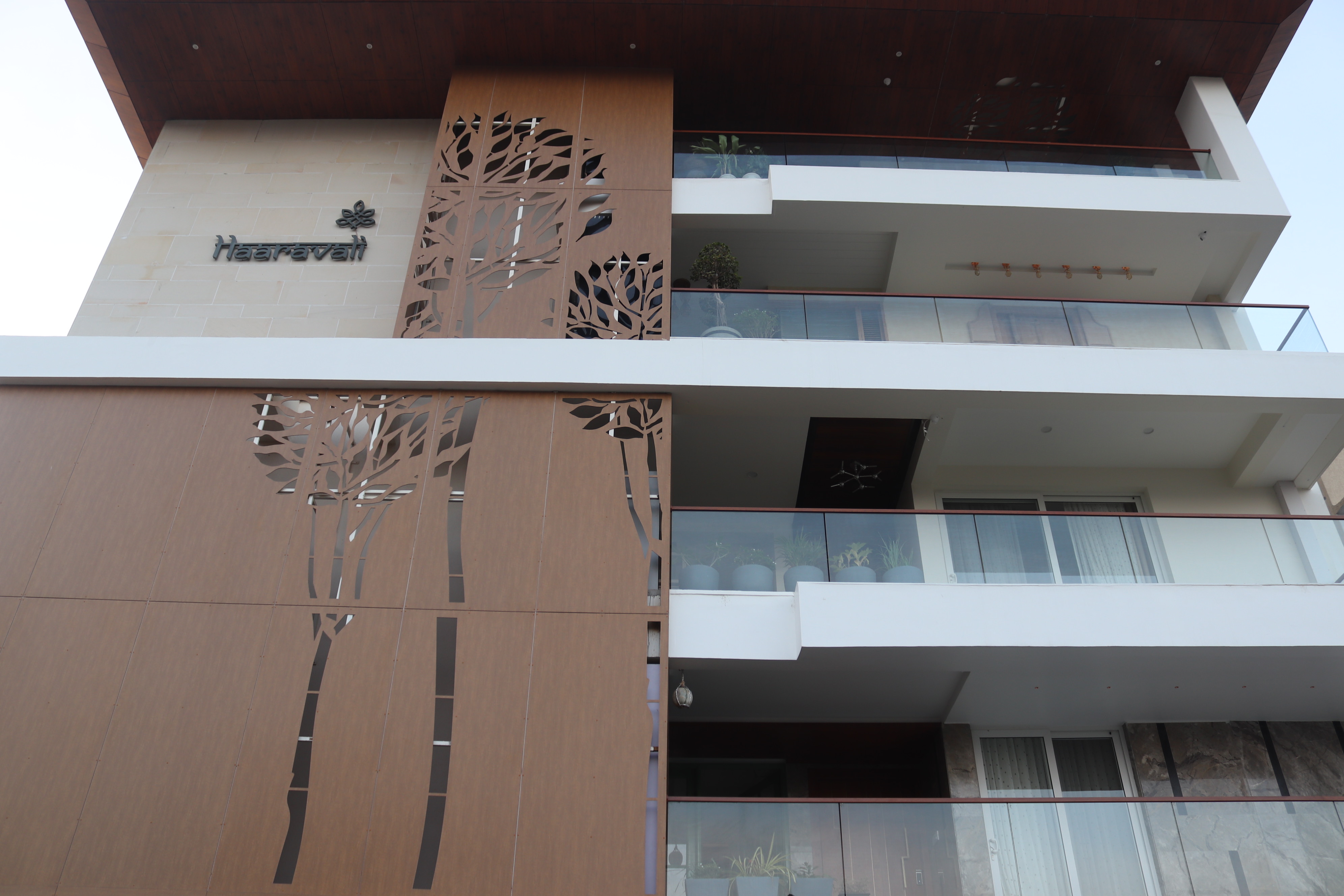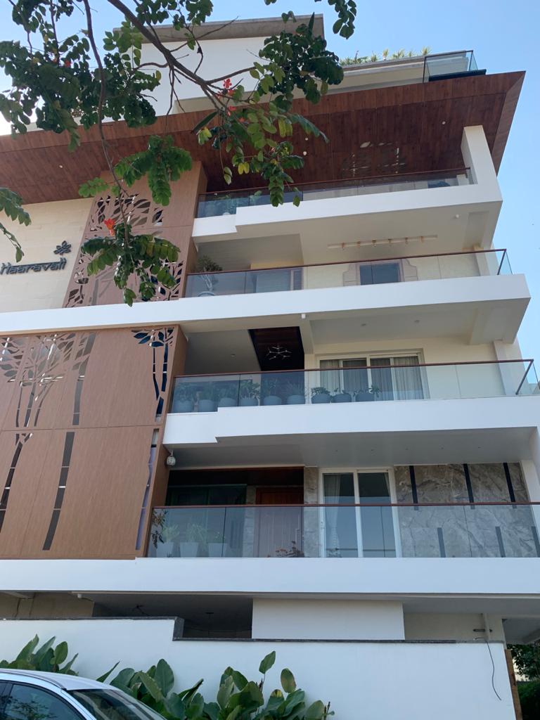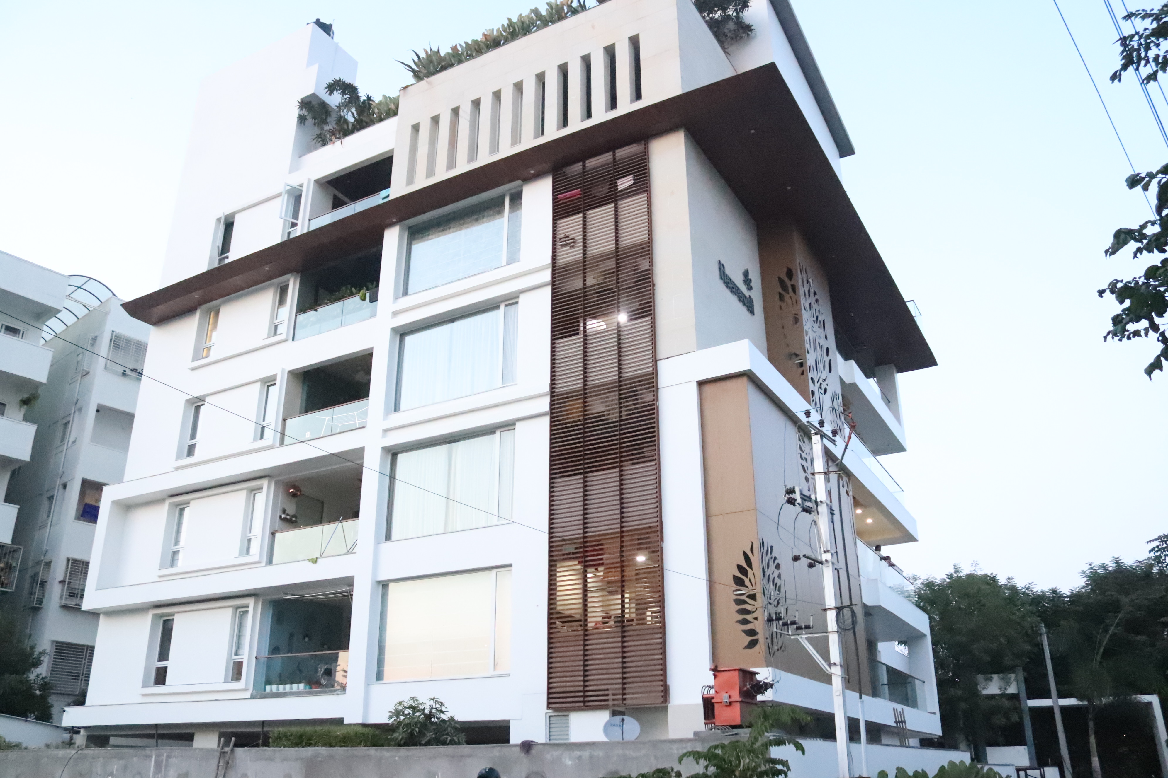 The luxurious residence having a balance of open and private spaces. residence creating a special control through carefully perforated volumes the building elevation showcase a sleek, clean aesthetic exterior detail to enhance the dialogue between the building and it's environment. the use of white colour in the major portion of the building gives a calming appearance and reflects a lot of light to give the building a visually bigger and brighter look. the design of terrace garden helps in reducing the room temperature and also bring piece of nature to the house.