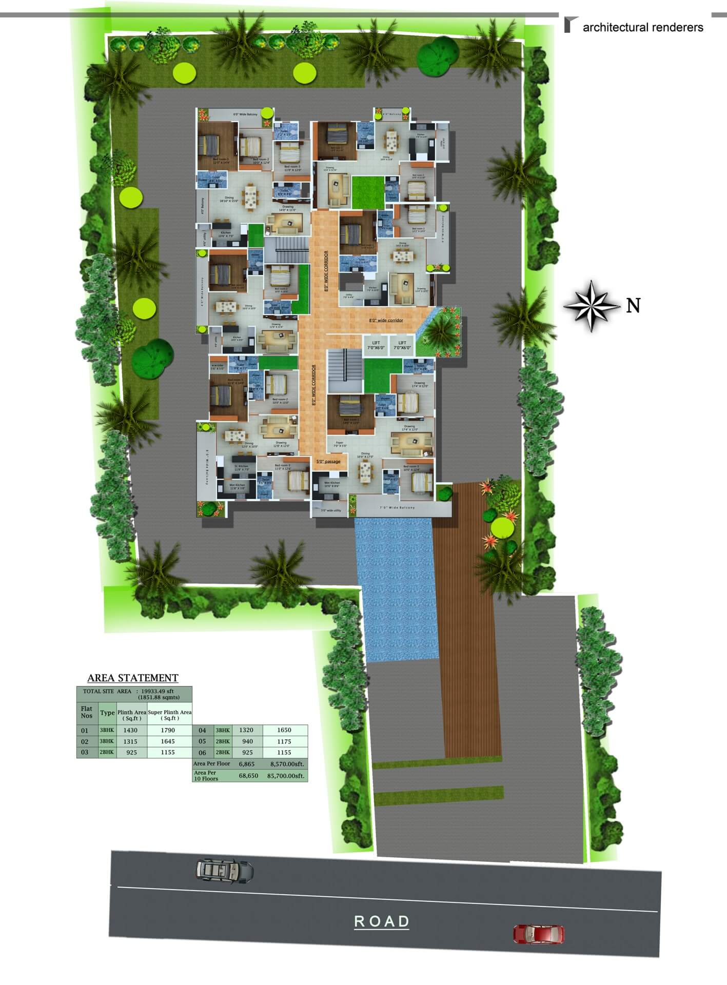 The main pattern in the emergence of the facade design is the creation of private balconies within the main facade and over all architectural character is defined by relatively inexpensive building component,